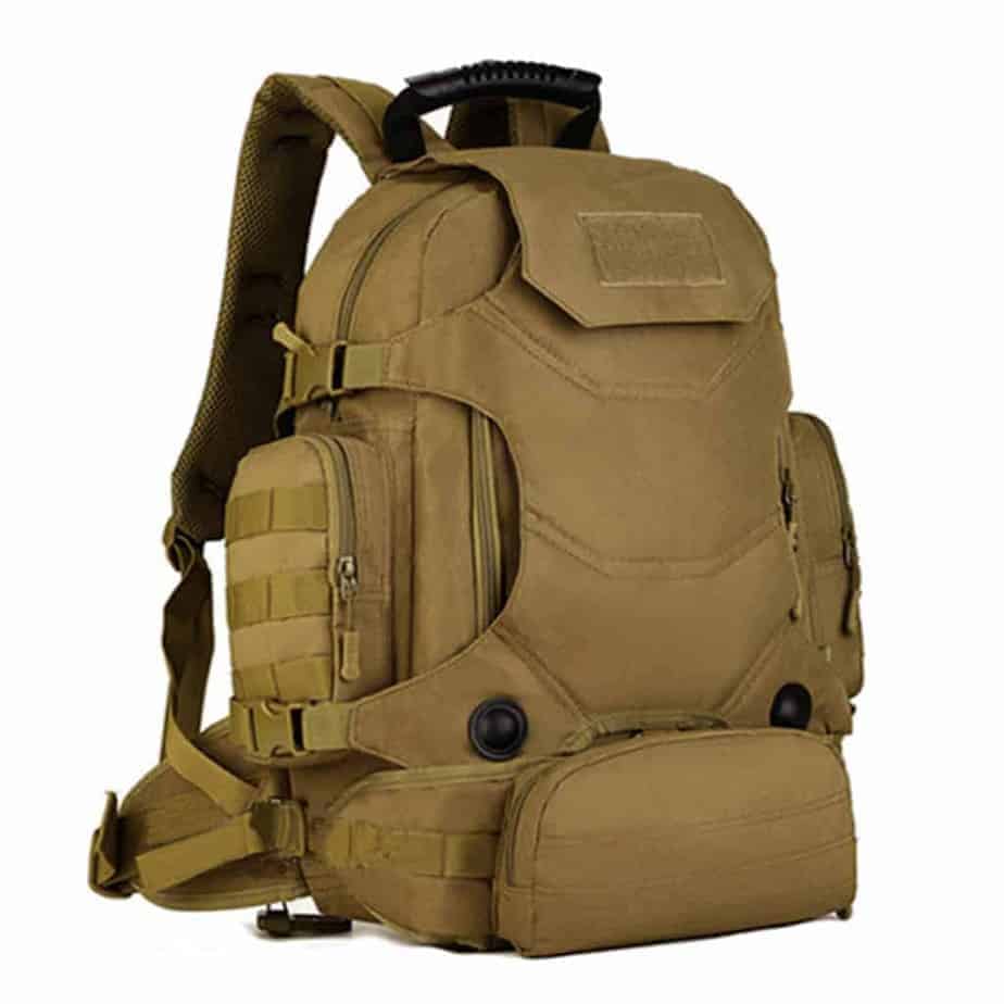 MOLLE external expansion system – The MOLLE system on both side pockets allow you to attach and load other equipment such as a water bottle bag, a camera bag, a flashlight, and other accessories.